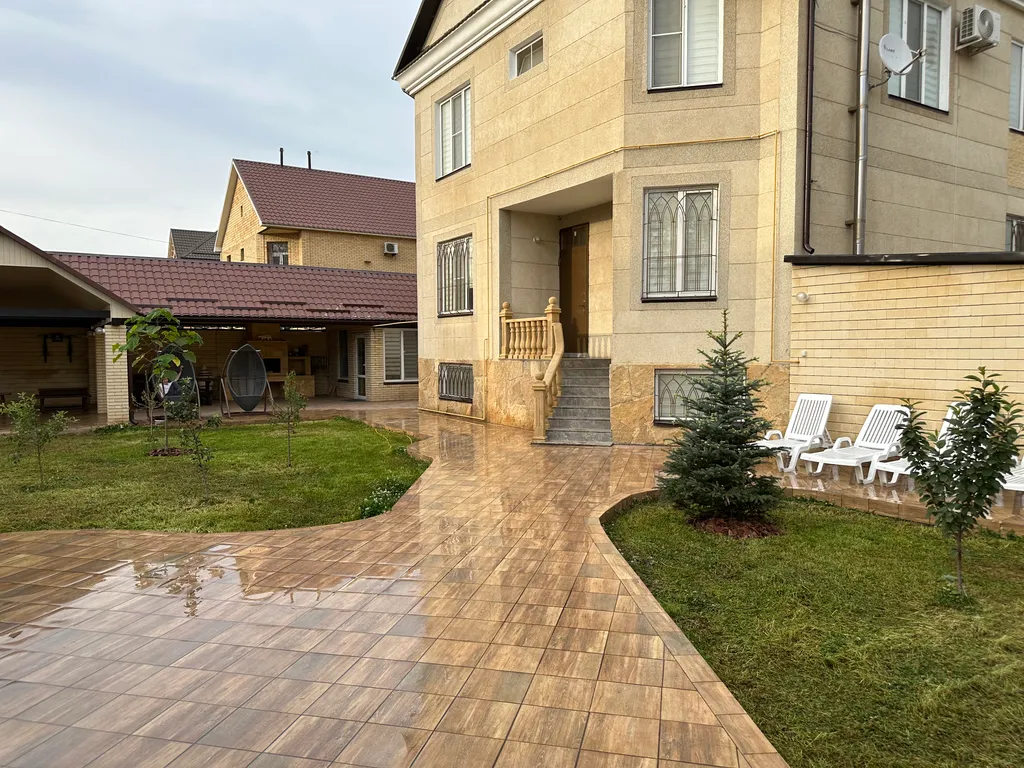 Добрый день! Гостевой дом (в любое время года) на охраняемой территории в Махачкале в трёх минутах ходьбы от седого Каспия. Двор: -Стоянка под навесом -Зеленая зона -Барбекю -Столовая на 12 персон -Санузел -Площадка для принятия солнечных ванн Нулевой этаж (комната отдыха) -Настольный теннис -Библиотека -Спальные места Первый этаж -Спальные места -Кухня -Санузел -Кондиционер -Телевизор Второй этаж -Прихожая -Первая спальня -Вторая спальня -Детская спальня -Кухня -Санузел -Кондиционер -Телевизор -Балкон