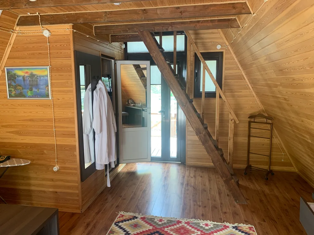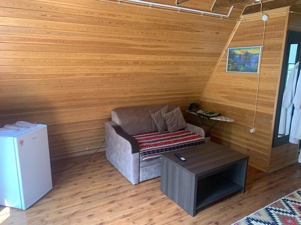 Просторный двухкомнатный номер в отдельном здании с двуспальной кроватью в спальне и раскладным креслом в гостиной. С террасой.