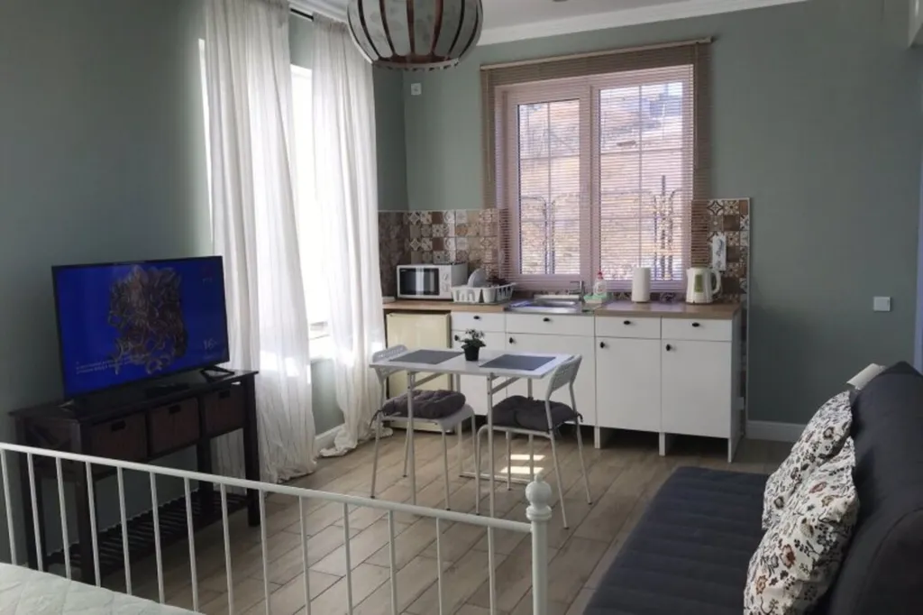 Апартаменты с индивидуальным входом и террасой с видом на три горы-достопримечательности поселка коктебель. Апартаменты оснащены всем необходимым для комфортного отдыха ( постельное бельё и полотенца со сменой в каждые 5 дней), так же к услугам предоставляется использование летней кухни и мангала (бесплатно) Мы предоставляем бесплатный wi-fi для всех гостей нашего отеля. Важно, что мы принимаем гостей с детьми от 7 лет. На территории 2 небольшие собаки. Во дворе есть мангал, а так же летняя кухня для всех гостей, небольшой сад, очаг, бесплатная парковка. Дорога до моря займет 10-12 минут спокойным шагом. Напротив гостиницы расположен магазин, до автостанции всего 500 м. Расстояние от отеля до аэропорта симферополь составляет 120 км и по запросу мы можем организовать для вас трансфер.