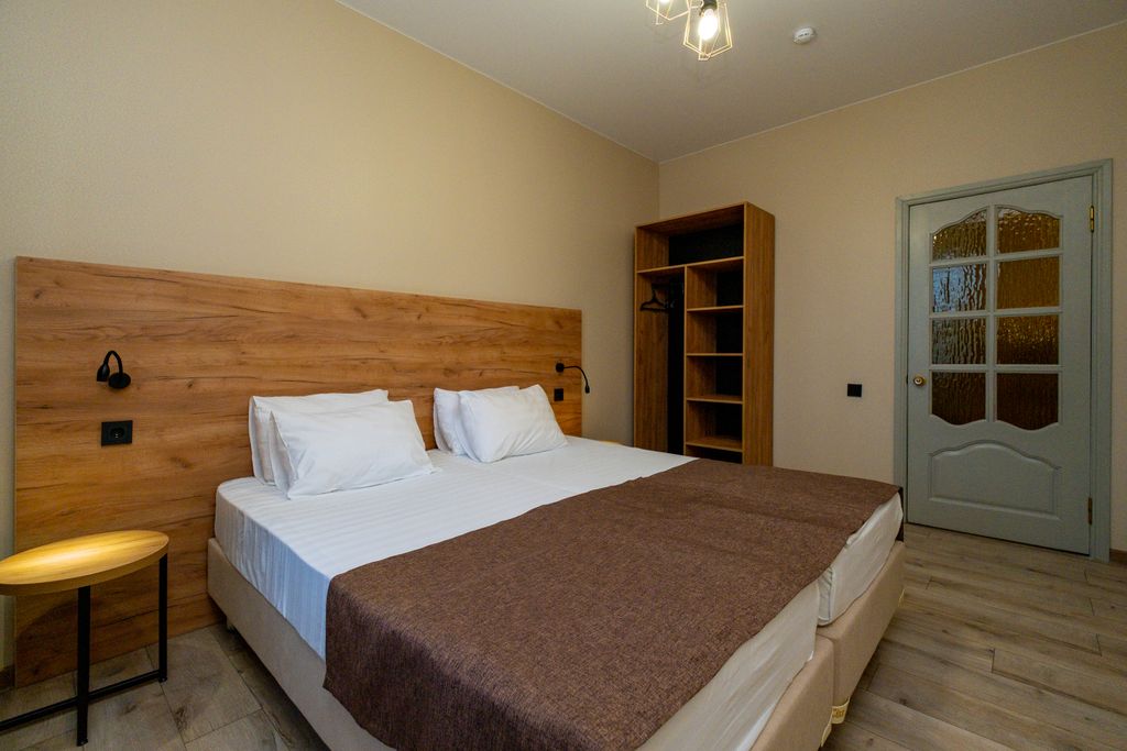 Семейный отдых у моря – проведите его в Анапе Отель «Татьяна» — это традиции гостеприимства, которые складывались без малого 20 лет. Мы знаем, что делает отпуск незабываемым и как удивить даже самых маленьких гостей. Вы оцените наше расположение Отель находится на Пионерском проспекте, рядом с кафе, магазинами и парками. Всего в 400 метрах от песчаного оборудованного пляжа. При этом отель находится в уединенном месте, где не слышен шум оживленной улицы. Вам понравится комфорт номеров Стильные и продуманные, комнаты подойдут как для пар, так и для больших семей и компаний. А дети оценят приятные мелочи: сиденья на унитаз, ванночки и подставки под ноги, словно и не уезжали из дома. Все это предоставим по запросу. Сытные завтраки – уже включены Вам не нужно беспокоиться о питании и о том, чем накормить ребенка. В обеденной зоне вас ждет завтрак, входящий в стоимость проживания. Обед и ужин вы можете заказать дополнительно. Дети всегда будут заняты интересным делом Многие годы