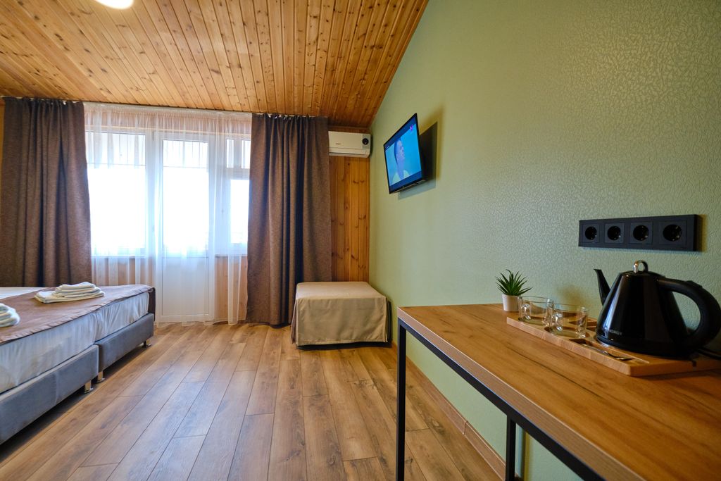 Семейный отдых у моря – проведите его в Анапе Отель «Татьяна» — это традиции гостеприимства, которые складывались без малого 20 лет. Мы знаем, что делает отпуск незабываемым и как удивить даже самых маленьких гостей. Вы оцените наше расположение Отель находится на Пионерском проспекте, рядом с кафе, магазинами и парками. Всего в 400 метрах от песчаного оборудованного пляжа. При этом отель находится в уединенном месте, где не слышен шум оживленной улицы. Вам понравится комфорт номеров Стильные и продуманные, комнаты подойдут как для пар, так и для больших семей и компаний. А дети оценят приятные мелочи: сиденья на унитаз, ванночки и подставки под ноги, словно и не уезжали из дома. Все это предоставим по запросу. Сытные завтраки – уже включены Вам не нужно беспокоиться о питании и о том, чем накормить ребенка. В обеденной зоне вас ждет завтрак, входящий в стоимость проживания. Обед и ужин вы можете заказать дополнительно. Дети всегда будут заняты интересным делом Многие годы