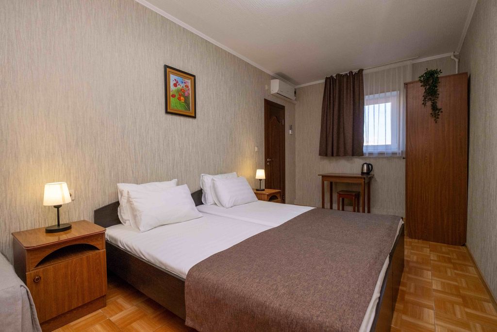 Семейный отдых у моря – проведите его в Анапе Отель «Татьяна» — это традиции гостеприимства, которые складывались без малого 20 лет. Мы знаем, что делает отпуск незабываемым и как удивить даже самых маленьких гостей. Вы оцените наше расположение Отель находится на Пионерском проспекте, рядом с кафе, магазинами и парками. Всего в 400 метрах от песчаного оборудованного пляжа. При этом отель находится в уединенном месте, где не слышен шум оживленной улицы. Вам понравится комфорт номеров Стильные и продуманные, комнаты подойдут как для пар, так и для больших семей и компаний. А дети оценят приятные мелочи: сиденья на унитаз, ванночки и подставки под ноги, словно и не уезжали из дома. Все это предоставим по запросу. Сытные завтраки – уже включены Вам не нужно беспокоиться о питании и о том, чем накормить ребенка. В обеденной зоне вас ждет завтрак, входящий в стоимость проживания. Обед и ужин вы можете заказать дополнительно. Дети всегда будут заняты интересным делом Многие годы