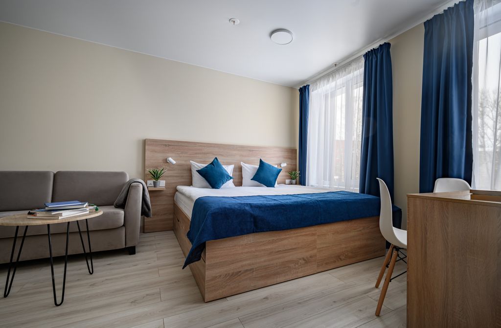 Отель в Приморском районе Санкт-Петербурга. Ближайшая станция метро «Чёрная речка» находится в 10 минутах ходьбы. Приморский район считается одним из престижных районов города. Именно здесь расположены знаменитая «Зенит-Арена», самый высокий в Европе небоскрёб «Лахта Центр», живописный парк 300-летия Санкт-Петербурга и парк на Елагином острове. Буквально в двух шагах от отеля находится железнодорожная станция «Новая Деревня», откуда легко можно добраться до Сестрорецкого курорта и берега Финского залива. Дополнительные услуги на территории комплекса: Платно — лобби-бар, прачечная самообслуживания. Бесплатно — детская площадка, парковка. C 7 до 11 утра в ресторане при отеле подается завтрак в формате «шведский стол». Стоимость завтрака 830 рублей с гостя любого возраста. Стоимость регистрации паспорта иностранного гражданина 600 рублей с человека. Стоимость парковки - 100 руб./час, 500 руб./сутки.