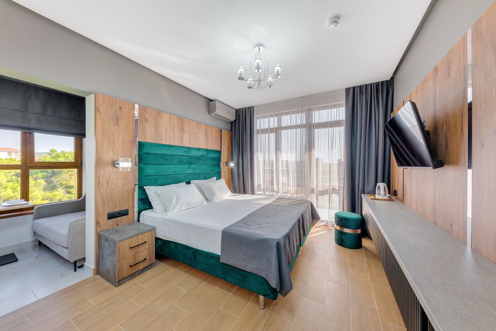 Отель «Гранд Премьер» в Геленджике - отель европейского уровня с высоким качеством сервиса и обслуживания. Современные и комфортабельные номера с панорамными окнами открывают шикарный вид на весь город,на ласковое море и величественные горы. Отель открыл свои двери в июле 2023 года. К услугам гостей 2 сауны: финская и инфракрасная, круглогодичный подогреваемый открытый бассейн, кафе-столовая на крыше, с которого открывается великолепный панорамный вид на всю Геленджикскую бухту. Все номера оснащены новой мебелью и техникой, собственными ванными комнатами. Дети до 3 лет бесплатно. С животными не принимаем. В кафе накрывают завтраки по системе «шведский стол» и сервируют блюда русской и европейской кухни. Здесь лучшее соотношение цены и качества в Геленджике! Ждём вас в гости!