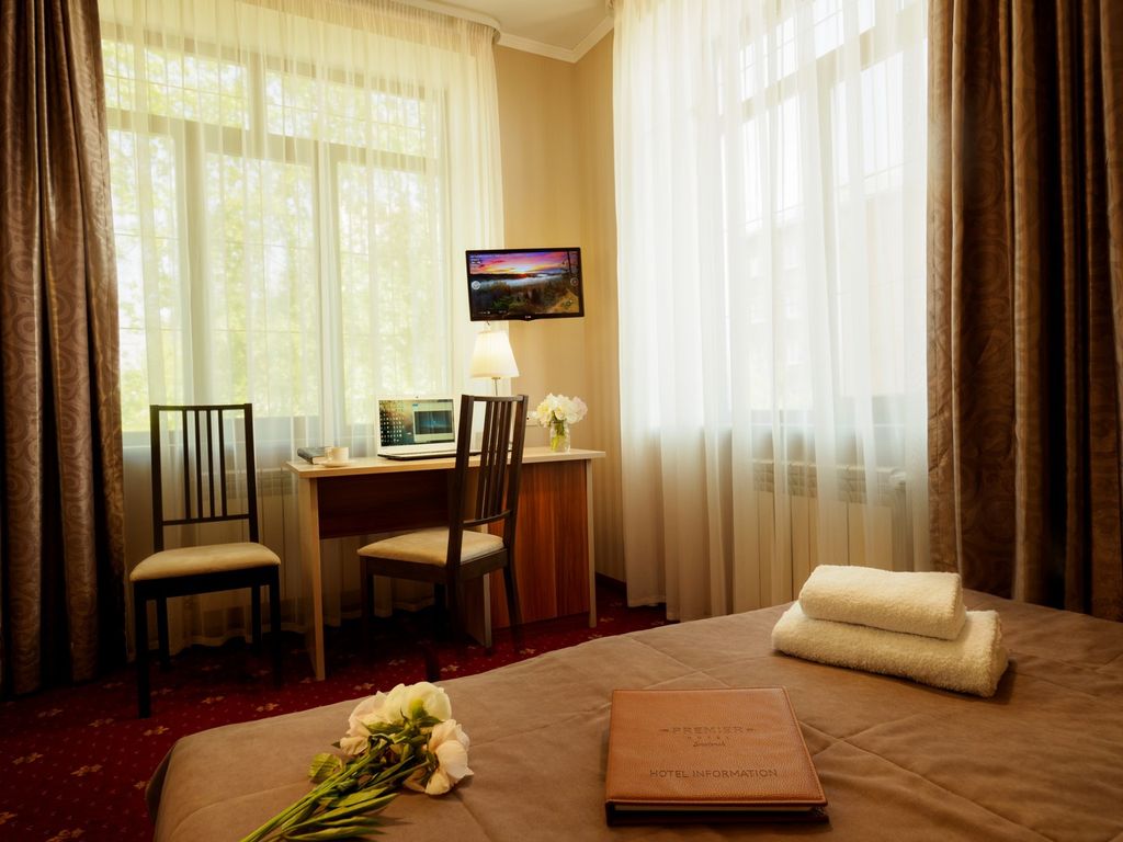 Премьер Отель 4* (Смоленск): Ваш лучший выбор в историческом центре! Премьер Отель 4* – это идеальное сочетание комфорта, безупречного сервиса и удобного расположения в непосредственной близости от исторического центра Смоленска. Наши преимущества: • Восторженные отзывы: Более 800 положительных отзывов от постоянных гостей и посетителей города, подтверждающих высочайшее качество сервиса и предоставляемых услуг. • Разнообразие номеров: Два корпуса отеля предлагают более 8 вариантов бронирования номеров на любой вкус и бюджет. • Безупречный сервис и гостеприимство: Мы обеспечиваем самое внимательное отношение к каждому гостю, следуя лучшим традициям векового гостеприимства древнего Смоленска. Выбирая Премьер Отель 4*, вы выбираете комфорт, удобство и незабываемые впечатления от посещения Смоленска!