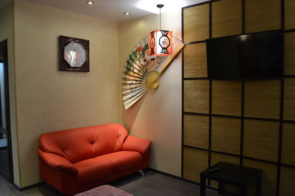 Наша гостиница расположена у центральной магистрали, рядом находится остановка общественного транспорта. Недалеко от гостиницы, на расстоянии 5 метров, есть кафе. Напротив гостиницы – удобная парковка. Для вашего удобства есть кухня, которой можно воспользоваться для разогрева пищи. Гостиница оснащена современной противопожарной системой. Бесплатный wi-fi. Все номера с прекрасной звукоизоляцией, а плотные шторы скроют от посторонних глаз и яркого солнечного света. В каждом номере к вашим услугам широкая двух спальная кровать с эргономичным матрасом, мини холодильник, плазменный телевизор, гардероб, связь со стойкой администратора. В ванных комнатах – душевая кабина, унитаз, раковина, туалетные принадлежности, фен. В гостинице 9 номеров: 3 номера класса люкс, 3 номера класса полулюкс, 3 номера класса стандарт. Все номера с неповторимым авторским дизайном, выполнены с применением самых лучших современных материалов. Вы окунетесь в потрясающую атмосферу Азии, индийской безмятежности,