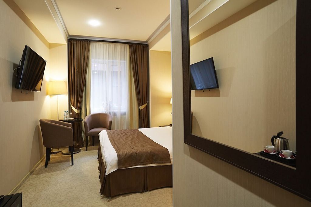 Гостиница «Европа» расположена в историческом центре города. В шаговой доступности отеля в Туле большое кафе, ресторанов и развлекательных центров, но наибольшее внимание привлекают у туристов различные памятники истории и места, где проводят экскурсии. Нас выбирают за индивидуальный подход к каждому гостю, недорогие цены и чистые уютные номера, а также возможность онлайн забронировать номера! Гости отеля в Туле останутся довольны возможностью полноценно отдохнуть в уютных номерах, и провести время в историческом центре, интересном для многочисленных туристов региона.
