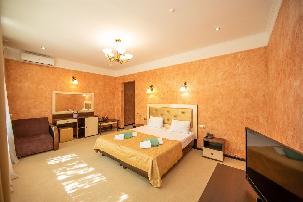 Мы рады пригласить жителей и гостей города-курорта Евпатория в пансионат «Царь Евпатор», который создан для ценителей повышенного комфорта, уюта и отличного отдыха. В погоне за впечатлениями важно возвращаться туда, где можно хорошо отдохнуть. Отель «Царь Евпатор» находится в Евпатории. В пешей доступности от центра города. Рядом с отелем — Аквапарк У Лукоморья, Парк Фрунзе и Центральный Пляж Евпатории.