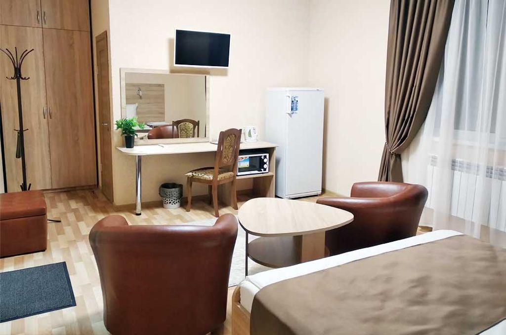 Роскошный комфортабельный современный отель «Саванна» находится в крупном городе Рязань, неподалеку от мемориального комплекса жертвам войны и репрессий. Для удобства гостей предусмотрены: сауна, парковка, доступ к Wi-Fi, круглосуточная стойка регистрации. Отдых здесь не оставит равнодушным никого. Номерной фонд представлен очень просторными светлыми номерами разных категорий, выполненными в неповторимом дизайне и с утонченным интерьером в теплой цветовой гамме. Номера укомплектованы всем необходимым — мягкой мебелью для сна, техникой, ванными комнатами с душем. Подходят для проживания как с семьей, так и с друзьями. На территории имеется ресторан с широким ассортиментом изысканных блюд и напитков. Предусмотрены завтраки по предварительным запросам. Для разнообразия рациона питания вблизи есть магазины продуктов. Расстояние до аэропорта — 137 км, железнодорожного вокзала — 8 км. Центр города расположен в 9 км. В шаговой доступности остановки общественного транспорта. Доехав до центр