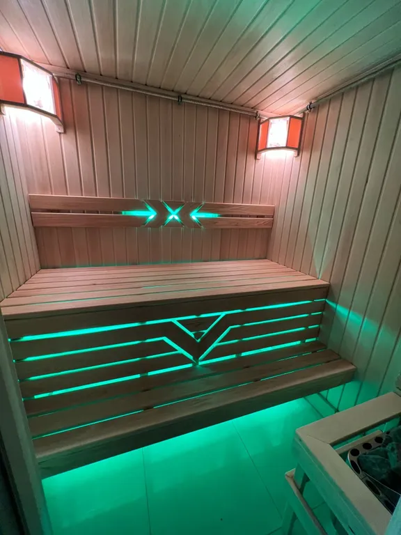 Сдаётся трёхэтажный коттедж с финской парной и мангальной зоной в микрорайоне Краснолесье. Цена указана за 8 человек (спальных мест 8). Финская парная и мангальная зона входят в стоимость проживания за одни сутки. Предоставляется кальян напрокат за дополнительную плату в размере 1500 рублей в сутки. По прибытии вас ждёт тёплый, прекрасный и уютный дом с закрытой территорией, к вашим услугам: Цокольный этаж. Профессиональный настольный теннис с местом для отдыха. Включено в стоимость. 1-й этаж. При входе вас встречает прихожая с барной стойкой. Далее находится большой зал для застолья с атмосферным декоративным камином, смарт-телевизором и музыкальным центром с караоке и блютусом. Там же находится просторная кухня с холодильником, микроволновкой, индукционной плитой, чайником, раковиной, всей необходимой посудой и кухонным стеклянным столиком. Также есть санузел. 2-й этаж. Здесь находится комната с финской парной, душем, санузлом и небольшим столиком, чтобы немного отдохнуть от