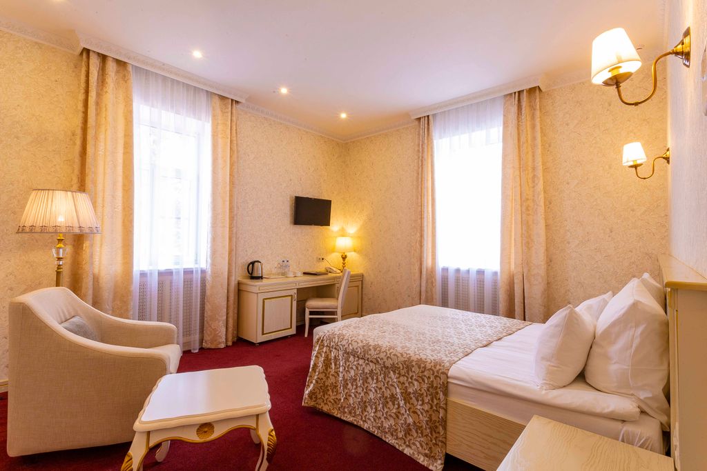 Наш бутик-отель расположен в Заволжском районе города Твери, на пересечении улицы Мусоргского и бульвара Шмидта. Помимо стандартных услуг, у нас вы откроете для себя современный спа-центр и уютный ресторан с широким ассортиментом блюд. В «Golden plaza» посетителей ждут комфортабельные номера от стандарта до класса люкс. Номера, вне зависимости от категории, оснащены всем необходимым для приятного отдыха. Интерьер бутик-отеля выдержан в современном европейском стиле, который приятно удивит даже самого строго критика. Для владельцев домашних питомцев есть хорошая новость – у нас предусмотрено заселение с животными с согласия администрации. Правда, при себе нужно иметь международный ветеринарный паспорт на животное и специальный контейнер. Приятно удивят наших гостей и условия проживания. Цены в бутик-отеле «Golden plaza» весьма демократичные и, как в большинстве отелей Твери, зависят от категории номера, который вам любезно поможет подобрать наш менеджер. Посещение СПА-комплекса возможно