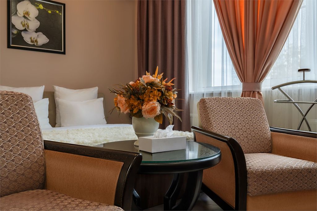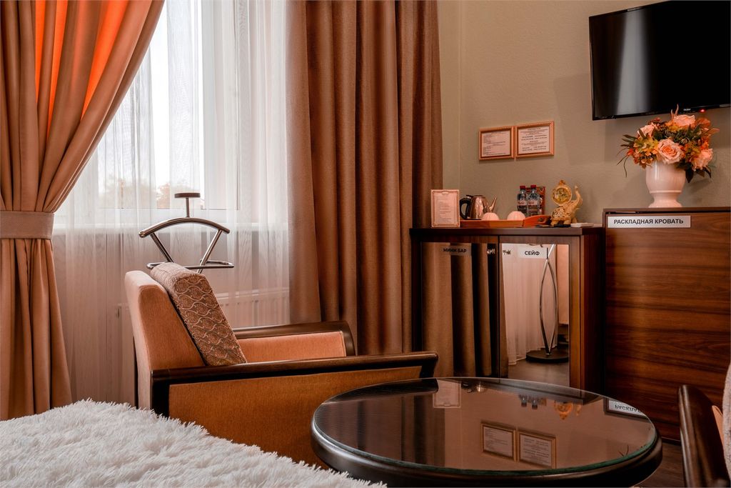 Фешенебельный отель «Tesoro» находится в городе Ростов-На-Дону. К вашим услугам здесь достойный уровень обслуживания. Интерьер апартаментов оформлен в изысканном стиле, в цветовой гамме преобладают коричневые оттенки тонов, которые создают атмосферу покоя и уюта. Все номера имеют необходимую для проживания мебель и технику, а из некоторых открывается замечательный вид на сад. Приём постояльцев происходит круглосуточно. К прочим преимуществам сервиса относятся: бесплатный интернет, телевизор, собственная ванная, гостиный угол, терраса, кондиционер, сейф, частная парковка для автомобилей, камера хранения багажа, люкс для новобрачных, ежедневная уборка, номера для некурящих людей и семейных пар. Для детей предусмотрены игровые комнаты и зоны, а также телеканалы. Каждое утро гостей угощают континентальным завтраком. Действуют специальные диетические меню, доставка еды и продуктов. Рядом расположены памятник дающая жизнь, автовокзал, стадион, концертный зал дом офицеров, расстояние до ме