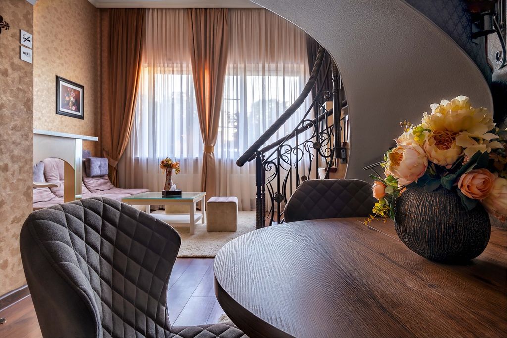Фешенебельный отель «Tesoro» находится в городе Ростов-На-Дону. К вашим услугам здесь достойный уровень обслуживания. Интерьер апартаментов оформлен в изысканном стиле, в цветовой гамме преобладают коричневые оттенки тонов, которые создают атмосферу покоя и уюта. Все номера имеют необходимую для проживания мебель и технику, а из некоторых открывается замечательный вид на сад. Приём постояльцев происходит круглосуточно. К прочим преимуществам сервиса относятся: бесплатный интернет, телевизор, собственная ванная, гостиный угол, терраса, кондиционер, сейф, частная парковка для автомобилей, камера хранения багажа, люкс для новобрачных, ежедневная уборка, номера для некурящих людей и семейных пар. Для детей предусмотрены игровые комнаты и зоны, а также телеканалы. Каждое утро гостей угощают континентальным завтраком. Действуют специальные диетические меню, доставка еды и продуктов. Рядом расположены памятник дающая жизнь, автовокзал, стадион, концертный зал дом офицеров, расстояние до ме