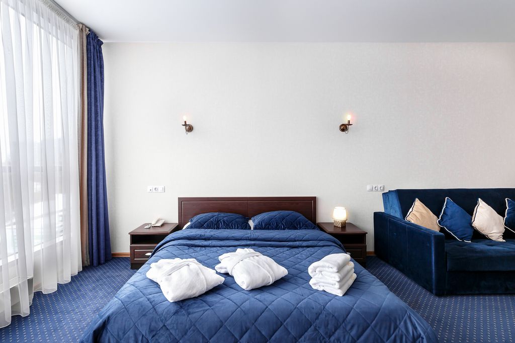 Отель Men'k Kings предлагает своим гостям неизменно высокий уровень обслуживания и все условия для комфортного и удобного проживания. Современное здание отеля оборудовано новейшими системами кондиционирования и отопления. Все номера гостиницы - от апартаментов до комфорта - выгодно отличаются четко продуманным функциональным оснащением и вместе с тем оригинальным стилем интерьеров. Все номера выдержаны в пастельных тонах, вас порадует привлекательный интерьер уютных номеров высокого европейского уровня, функциональная мебель и сантехника, комфортная ванная комната с душевыми кабинами, набором туалетных принадлежностей, фильтрацией воды, теплыми полами. Во всех номерах предусмотрены: бесплатный завтрак по количеству прожитых ночей, система беспроводного доступа в интернет (WI-FI), плазменные телевизоры, современная индивидуальная система воздушной очистки и поддержания микроклимата, спутниковое ТВ. В уютном ресторане отеля гостям будет предложена как традиционная русская, так и изы