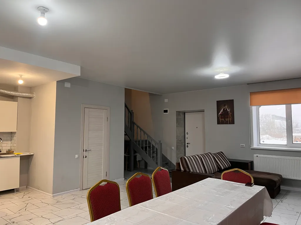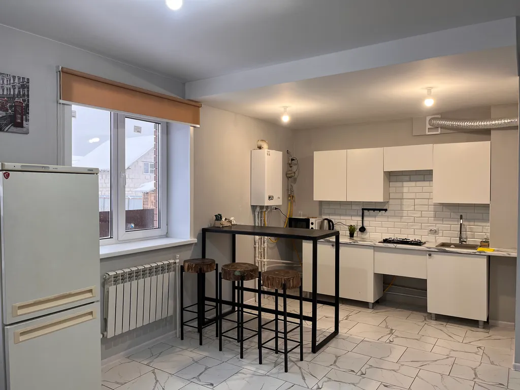 Возможно размещение до 8 человек. В наличии: мангал, тандыр, 2-этажа, 3 спальни, 1 кухня-гостиная, 2 душа, 3 с/у Описание дома: Спальни 3 светлые спальни, оформленные в теплых тонах и оборудованные всем необходимым для вашего удобства: - Кровати 160см*200см - Постельное бельё - Индивидуальные средства гигиены (тапочки, зубные щетки, полотенца, гель для душа) Гостиная На 1 этаже расположены гостиная, кухня и столовая зона, где вы сможете наслаждаться семейными ужинами: - Холодильник - Микроволновка - Столовая посуда, столовые приборы, кастрюли, сковорода Мангальная зона Установленный мангал и тандыр позволят вам готовить вкусные блюда на свежем воздухе и наслаждаться атмосферой пикника. Дополнительные преимущества Уютный двор, где можно провести время на свежем воздухе. Удобное месторасположение: в пешей доступности (5-7мин) продуктовый магнит, до центра города 15 минут.