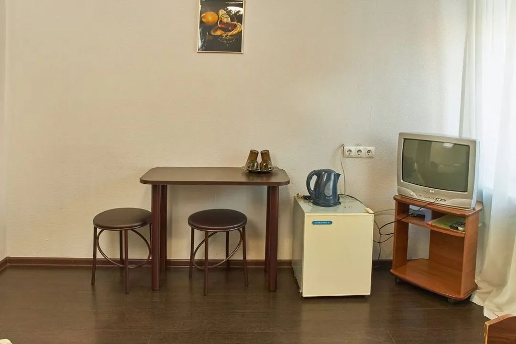 Гостиница «Аэроотель» расположена в тихом районе на севере города Абакана, в 100 метрах от аэропорта. Близость к воздушной гавани делает гостиницу отличным выбором для тех, кто ценит свое время. Остановка общественного транспорта, также расположенная рядом, позволит быстро добраться до центра города. Расстояние до центра: 4, 38 км. Для размещения в гостинице «Аэроотель» предусмотрены 30 номеров различной категорий - одноместные, двухместные, номера категории люкс, полулюкс, стандарт, эконом класса. В комплектацию каждого из номеров входят – двухспальная кровать или две односпальные кровати, платяной шкаф, стол, прикроватные тумбочки, телевизор, холодильник, чайник, столовые приборы, санузел в ванной комнате. В номерах люкс дополнительно мягкая мебель, кондиционер. Питание для гостей организовано в сервис-баре. Здесь предлагаются горячие блюда, закуски, салаты, и прохладительные напитки.