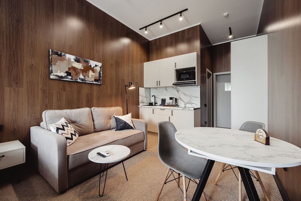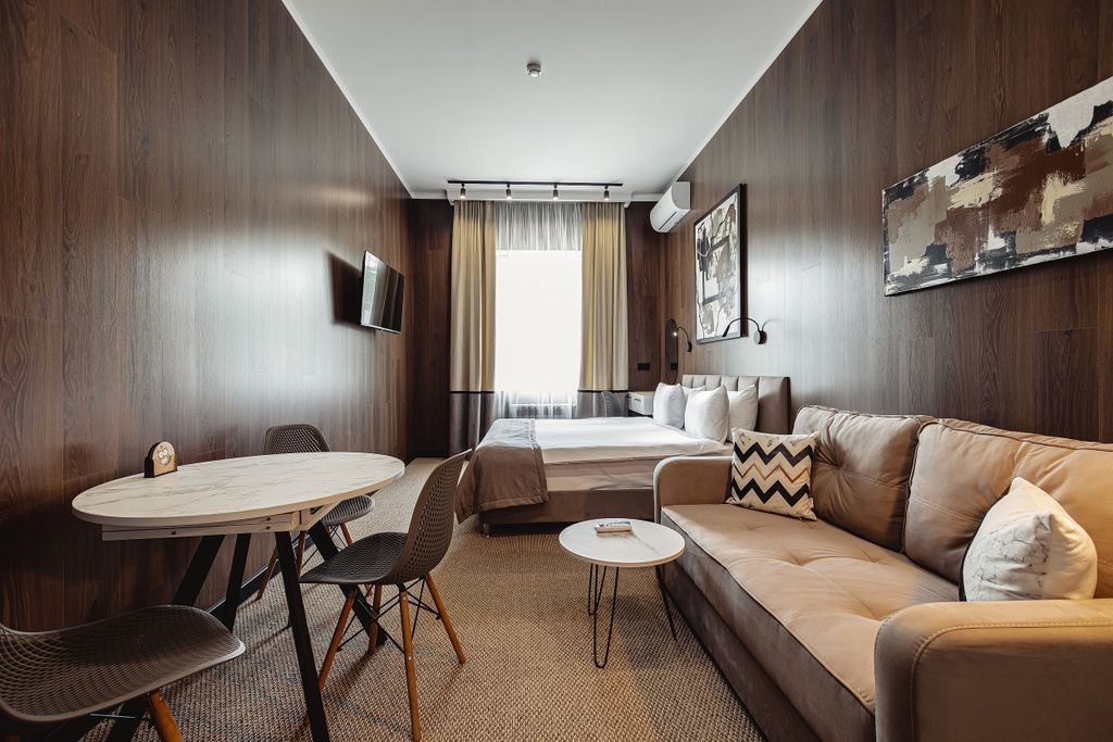 Апарт-отель, где комфорт встречается с домашним уютом! Каждый из наших стильных номеров оборудован кухней и всем необходимым для самостоятельного приготовления пищи. Открытый подогреваемый бассейн с панорамным видом на горы, баня сухого парения, уютная зона костра и отдыха с пледами станут прекрасным завершением дня и восстановления сил, для Вашего идеального отдыха. В нашем отеле вы найдете все, что нужно для незабываемого отдыха! А мы позаботимся о Вас!