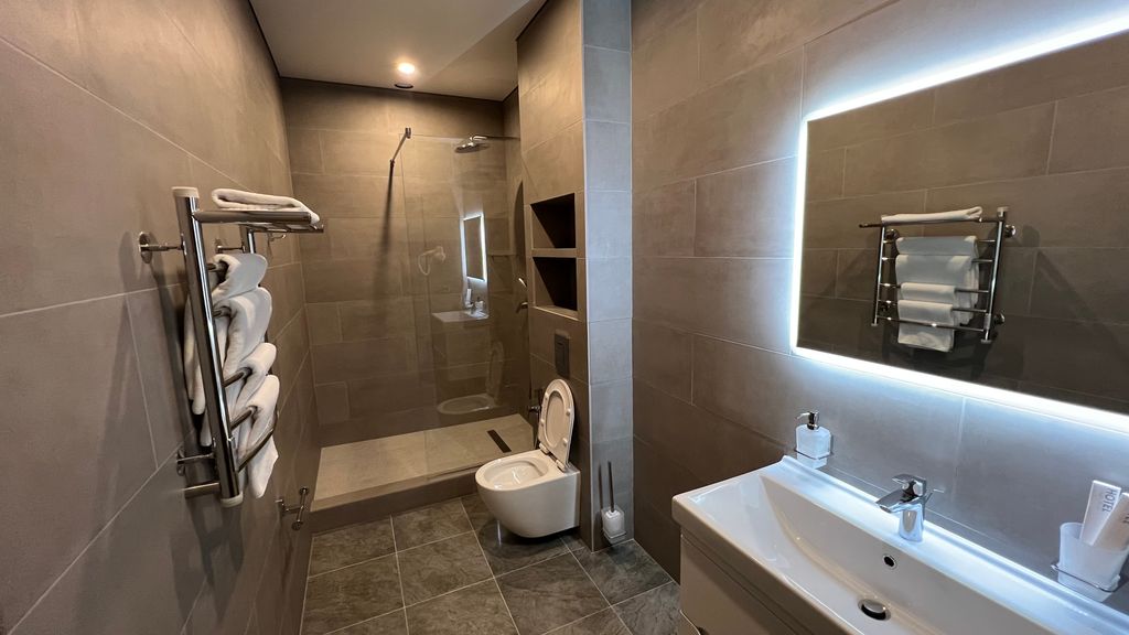 Четырёхзвездочный бутик-отель «проспект» открылся в сентябре 2023 года на главной улице нальчика – проспекте ленина. В 10 минутах ходьбы расположена пешеходная часть улицы кабардинская, в 20 минутах – знаменитый атажукинский парк. Также рядом много магазинов, кофеен и ресторанов на любой вкус и бюджет. В отеле 3 этажа и 11 номеров в четырёх категориях: двух и трёхместные «стандарты», «комфорты» с личной террасой и двухкомнатный «люкс» для семьи или большой компании. В каждом номере – дизайнерский ремонт и новая, стильная мебель. Мы позаботились, чтобы вы хорошо выспались и отдохнули: выбрали самые удобные ортопедические матрасы, а на окна повесили шторы блэкаут. Также для вашего комфорта везде – тёплый пол, кондиционер, холодильник и телевизор со smart-tv. В санузле – кабина с тропическим душем, который расслабит вас после деловых встреч или приятной прогулки по курортному городу. Бутик-отель «проспект» – отличный выбор для бизнес-поездок или тихого семейного отдыха. Удачное располож