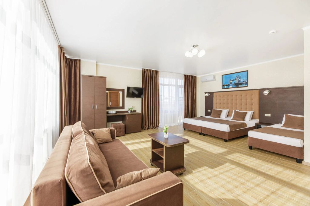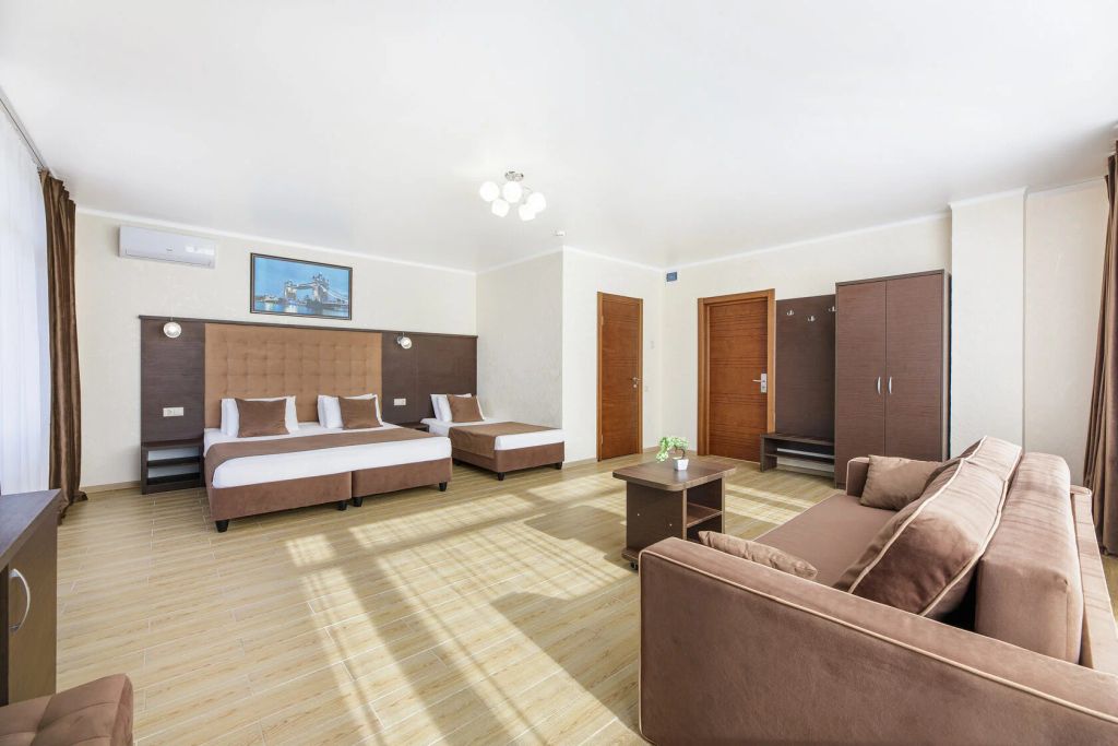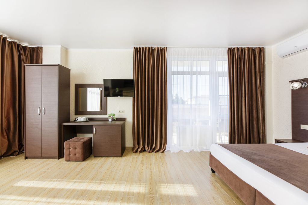 Новый уютный отель для всей семьи расположился на первой береговой линии поселка Витязево (Анапа). В пешей доступности от отеля есть все, что нужно для семейного отдыха: единственный и уникальный в своем роде на всем черноморском побережье России тематический парк водных аттракционов «Олимпия», а также дельфинарий, парк аттракционов, кафе и рестораны. В 3 минутах ходьбы от отеля расположена центральная аллея «Параллия» с выходом на море. К услугам гостей изысканная кухня, трёхразовое питание, сезонный открытый бассейн, терраса и общий лаундж, детская игровая площадка, детская комната, бесплатный wi-fi, во всех номерах есть балкон. Отель построен по последним технологиям строительства. Сотрудники стойки регистрации всегда готовы помочь гостям. Анапа находится в 17 км от семейного отеля Leonsia. Расстояние до аэропорта Анапы составляет 9 км.