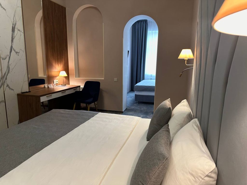 Отель «марис» 3* - это новый современный дизайн, спокойная атмосфера и идеальное место для семейного отдыха! Гости выбирают нас за уникальную возможность в шаговой доступности насладиться питьевыми источниками «ессентуки №17» и «ессентуки №4», национальной кухней и удивительной красотой города-курорта ессентуки. В пределах 5- 7 минутной пешей прогулки находятся основные исторические и культурные достопримечательности, скверы и парки, кафе и рестораны, банки, магазины, а так же органы государственной и исполнительной власти и места деловой активности города. Отель «марис» является оптимальным местом проживания, как для деловых людей, так и для любителей туризма и спокойного отдыха! На территории отеля бесплатный wi-fi, общая lounge-зона, где гости всегда могут отдохнуть перед заездом в номер. В номерах категории «трёхместный» и «vip апартаменты» есть кухонный уголок и всё самое необходимое для вашего комфортного проживания. Так же на 1 этаже располагается комната отдыха и общая кухн