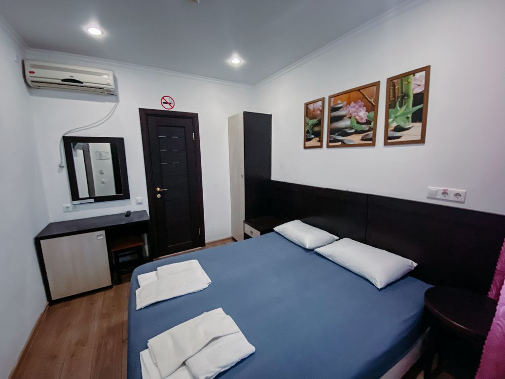 Приглашаем Вас отдохнуть в отеле «Каравелла», расположенной в центре города-курорта Анапа! До песчаного пляжа 15 минут пешком! Вас ожидают уютные номера с удобной мебелью и приятным текстилем. Представлены номера самых разных категорий: эконом, стандарт, 2хкомнатные номера и 2хкомнатная квартира 120 кв.м.. Номера укомплектованы всем необходимым — телевизор, кондиционер, холодильник, санузел, гладильная доска и утюг, сейф. Гостям предоставляется постельное белье, полотенца, тапочки, душевые принадлежности: шампунь, гель для душа, мыло. На всей территории отеля действует бесплатный Wi-Fi. Гостям, путешествующим на автомобиле, предоставлена бесплатная парковка. Вся инфраструктура города находится в шаговой доступности: парк с поющими фонтанами и аттракционами, набережная, кафе и столовые, аквапарк, центральный рынок и др. Ждем Вас на отдых!