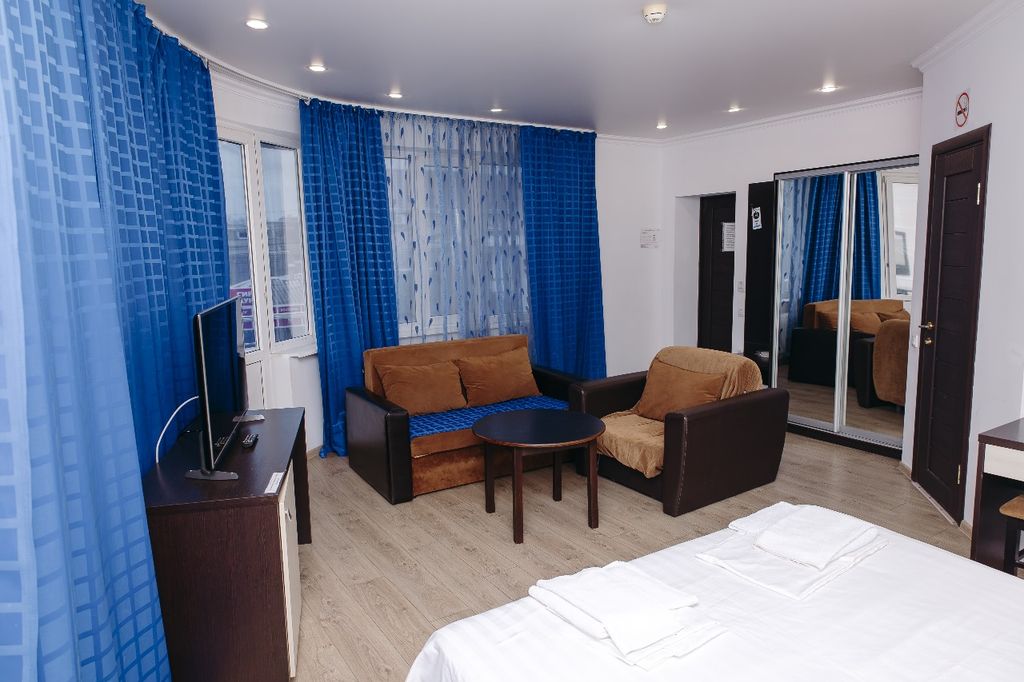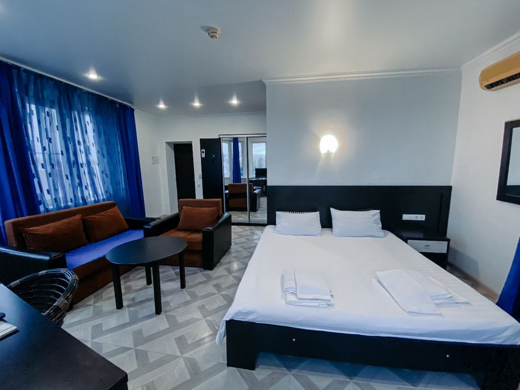 Приглашаем Вас отдохнуть в отеле «Каравелла», расположенной в центре города-курорта Анапа! До песчаного пляжа 15 минут пешком! Вас ожидают уютные номера с удобной мебелью и приятным текстилем. Представлены номера самых разных категорий: эконом, стандарт, 2хкомнатные номера и 2хкомнатная квартира 120 кв.м.. Номера укомплектованы всем необходимым — телевизор, кондиционер, холодильник, санузел, гладильная доска и утюг, сейф. Гостям предоставляется постельное белье, полотенца, тапочки, душевые принадлежности: шампунь, гель для душа, мыло. На всей территории отеля действует бесплатный Wi-Fi. Гостям, путешествующим на автомобиле, предоставлена бесплатная парковка. Вся инфраструктура города находится в шаговой доступности: парк с поющими фонтанами и аттракционами, набережная, кафе и столовые, аквапарк, центральный рынок и др. Ждем Вас на отдых!