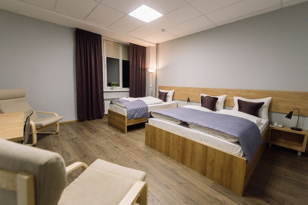 Современный 4-этажный гостиничный комплекс расположен в городе Смоленске, на проспекте Строителей, в трЁх минутах пешком от Федерального центра травматологии и ортопедии, в шаговой доступности от парка Соловьиная роща, отвечает всем актуальным требованиям, необходимым для комфортного проживания вдали от дома. “Стандарт отель” в городе Смоленске предлагает своим гостям тихие, комфортабельные, уютные и чистые номера, оборудованные всем необходимым для проживания 1-3 человек (телевизор, Wi-Fi, теплые полы в ванной, фен). Светлое кафе с вкусным завтраком и ланчем, сауна с мягким паром, постельное белье высшего качества Satin Jet и мягкие улучшенные ортопедические матрасы гарантируют Вам полноценный отдых после долгого дня. Добро пожаловать в Смоленск!