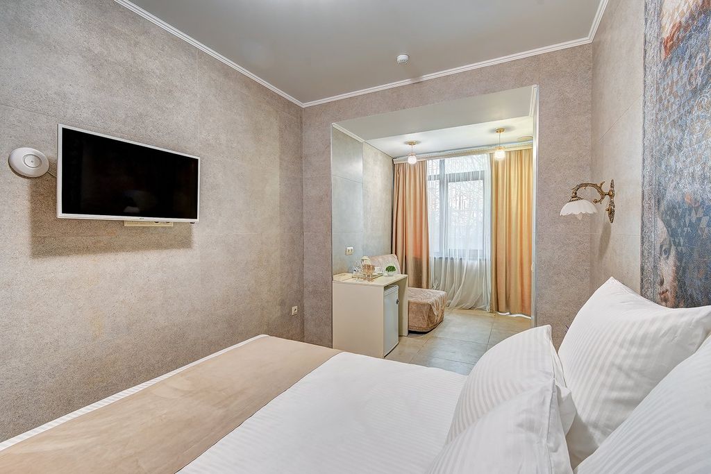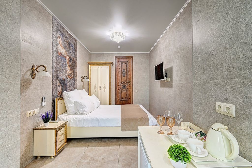 Отель «Амбассадор» расположен в туристическом районе Сочи. Отель предоставляет гостям такие услуги, как бесплатный интернет, прачечную, круглосуточную стойку регистрации, камеры для хранения. Категории номеров выполнены в стильном светлом стиле. Каждый номер оборудован новым своевременным телевизором, индивидуальными ванными комнатами с гигиеническими принадлежностями. Из окон номеров категорий Студия Панорама, Студия Панорама улучшенный и Комфорт Панорама открывается вид на город и море. Рядом с отелем находятся всевозможные развлечения и достопримечательности, набережные, морской порт, а также торговые центры, кинотеатры, кафе и рестораны. До моря менее одного километра. Расстояние до ближайшего аэропорта составляет - 22 км. Континентальные завтраки предоставляются в кафе "Веранда №1", на выбор для гостей предлагается несколько вариантов завтраков. Кафе расположено в отеле на первом этаже с открытой летней террасой с красивым видом на город. Время предоставления завтраков