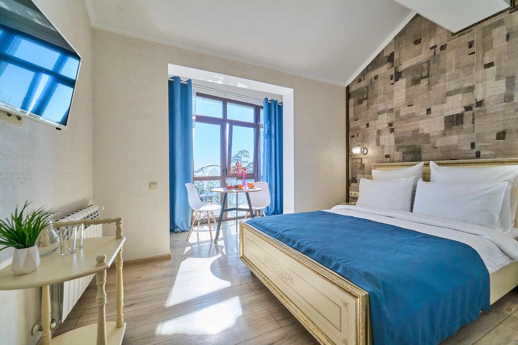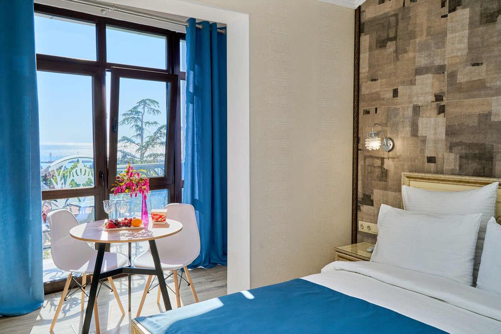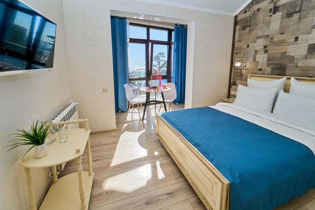 Отель «Амбассадор» расположен в туристическом районе Сочи. Отель предоставляет гостям такие услуги, как бесплатный интернет, прачечную, круглосуточную стойку регистрации, камеры для хранения. Категории номеров выполнены в стильном светлом стиле. Каждый номер оборудован новым своевременным телевизором, индивидуальными ванными комнатами с гигиеническими принадлежностями. Из окон номеров категорий Студия Панорама, Студия Панорама улучшенный и Комфорт Панорама открывается вид на город и море. Рядом с отелем находятся всевозможные развлечения и достопримечательности, набережные, морской порт, а также торговые центры, кинотеатры, кафе и рестораны. До моря менее одного километра. Расстояние до ближайшего аэропорта составляет - 22 км. Континентальные завтраки предоставляются в кафе "Веранда №1", на выбор для гостей предлагается несколько вариантов завтраков. Кафе расположено в отеле на первом этаже с открытой летней террасой с красивым видом на город. Время предоставления завтраков