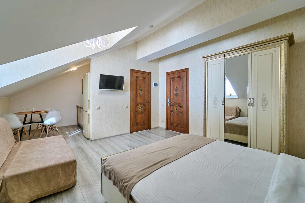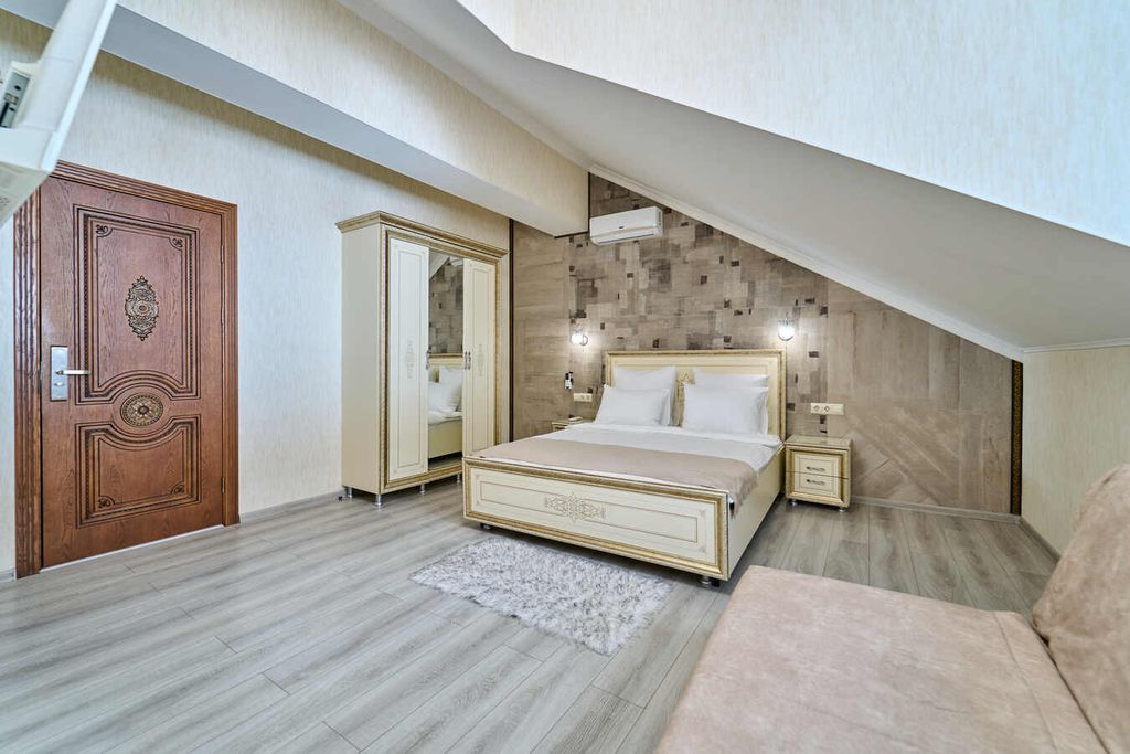 Отель «Амбассадор» расположен в туристическом районе Сочи. Отель предоставляет гостям такие услуги, как бесплатный интернет, прачечную, круглосуточную стойку регистрации, камеры для хранения. Категории номеров выполнены в стильном светлом стиле. Каждый номер оборудован новым своевременным телевизором, индивидуальными ванными комнатами с гигиеническими принадлежностями. Из окон номеров категорий Студия Панорама, Студия Панорама улучшенный и Комфорт Панорама открывается вид на город и море. Рядом с отелем находятся всевозможные развлечения и достопримечательности, набережные, морской порт, а также торговые центры, кинотеатры, кафе и рестораны. До моря менее одного километра. Расстояние до ближайшего аэропорта составляет - 22 км. Континентальные завтраки предоставляются в кафе "Веранда №1", на выбор для гостей предлагается несколько вариантов завтраков. Кафе расположено в отеле на первом этаже с открытой летней террасой с красивым видом на город. Время предоставления завтраков