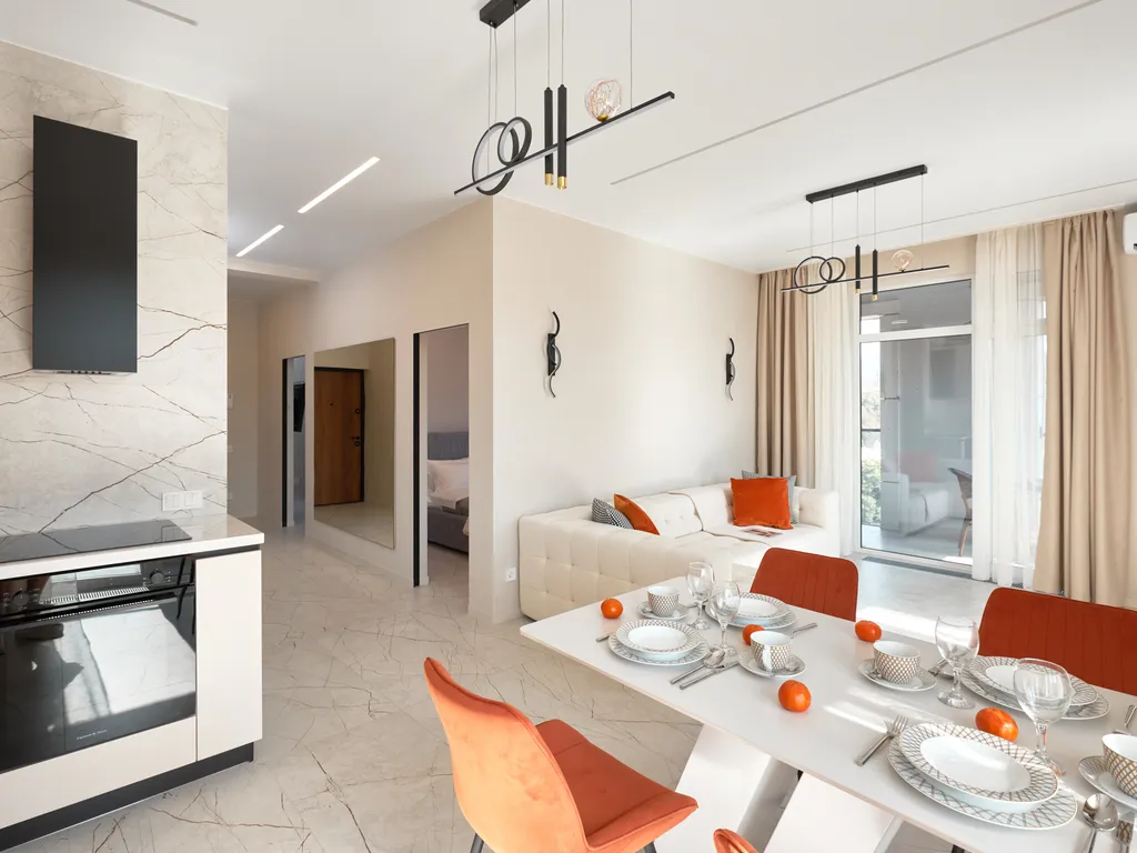 Просторная, стильная, очень светлая квартира с видом на горы в ЖК «Аллея Парк». Комплекс расположен на равнине, в шаговой доступности от пляжа ( 15 минут пешком). В Дагомысе самый чистый, благоустроенный пляж с развитой инфраструктурой, один из самых широких на Черноморском побережье. Квартира оснащена: -Стильная кухня-гостиная с удобным большим раскладывающимся диваном( электропривод)вместительным обеденным столом, кухонным гарнитуром. -Красивая посуда. - Посудомоечная машина -Встроенный духовой шкаф. - Кондиционер во всех комнатах - Большой балкон по всему периметру квартиры оснащен креслами и столами, где вы можете выпить кофе любуясь на рассвет. 2 спальни, с выходом на балкон. - В спальне широкая кровать 180*200 с ортопедическим матрасом «Аскона» - Маленькой спальне кровать 140* 200 - в гостиной широкий раскладной диван- кровать( с электроприводом) - 2 TV, Wi-Fi -Санузел с просторной душевой кабиной и ванной, гигиеническим душем. -Просторная гардеробная. -Квартира с дорогим р