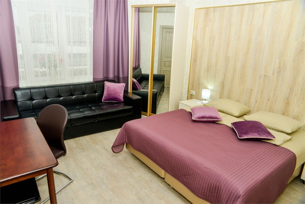 Новый современный небольшой отель предлагает гостям комфортное размещение в уютных номерах с большими кроватями. Номера оснащены всем необходимым. Бесплатный wi-fi, большой led телевизор, сейф, мини-холодильник, письменный стол. Завтрак гостям всех категорий номеров предлагается бесплатно. Гостям с детьми до пяти лет в категории номеров "стандарт плюс", "полулюкс" и "люкс" предоставляется бесплатно детская кроватка. Имеется парковка для лёгкового автотранспорта. Видеонаблюдение.