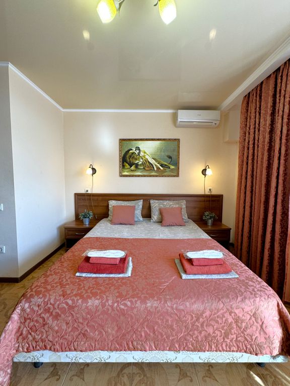Приглашаем Вас отдохнуть в современный отель «Атриум» с закрытой охраняемой территорией под видеонаблюдением. Атриум расположился в тихом районе курортного поселка Дивноморское, всего в 200 метрах от побережья Черного моря и в 200 метрах от центральной пешеходной улицы. К вашим услугам солнечная терраса с шезлонгами у открытого плавательного бассейна, детская игровая площадка, зона отдыха с фонтаном, настольный теннис, кафе-столовая для отдыхающих отеля, спортивный тренажер. На всей территории и в номерах предоставляется бесплатный Wi-Fi. Номера располагают всем необходимым для хорошего отдыха: кондиционером, холодильником, индивидуальным сейфом и телевизором с плоским экраном и кабельными каналами. В собственной ванной комнате с душем предоставляется фен и туалетно-косметические принадлежности. В столовой отеля «Атриум» подают разнообразные блюда. В 5 минутах ходьбы от отеля можно посетить различные рестораны и бары. Для гостей, прибывающих на автомобилях за дополнительную плату предо