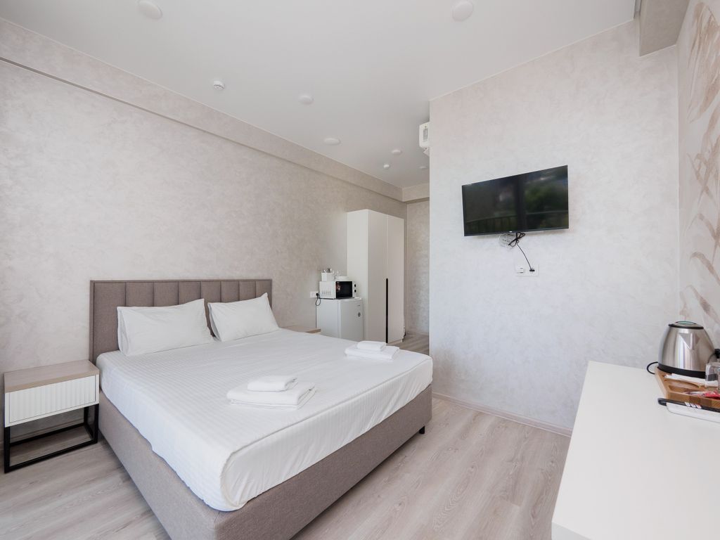 Резиденция Каскад 3 звезды - премиальный семейный отель с бассейном, сауной и открытой террасой на крыше всего в 10 минутах ходьбы от моря. Номера оснащены всем необходимым для проживания: кондиционер, микроволновая печь, чайная станция, холодильник, посуда. В ванных комнатах ванна или душ (уточнять при бронировании).