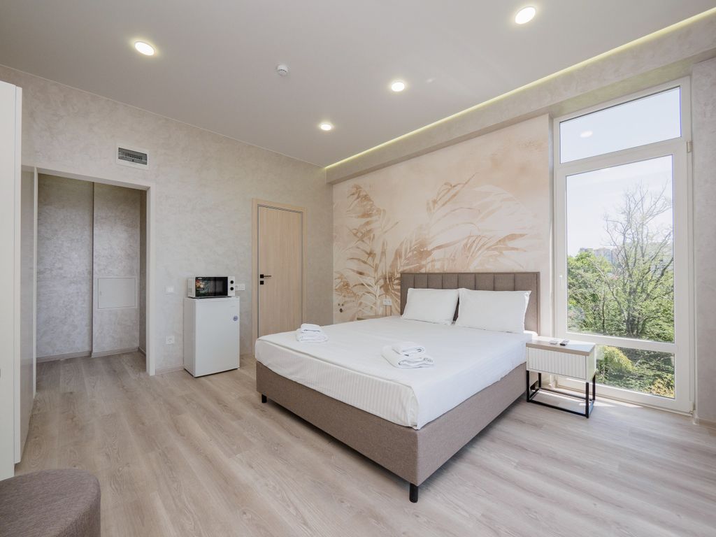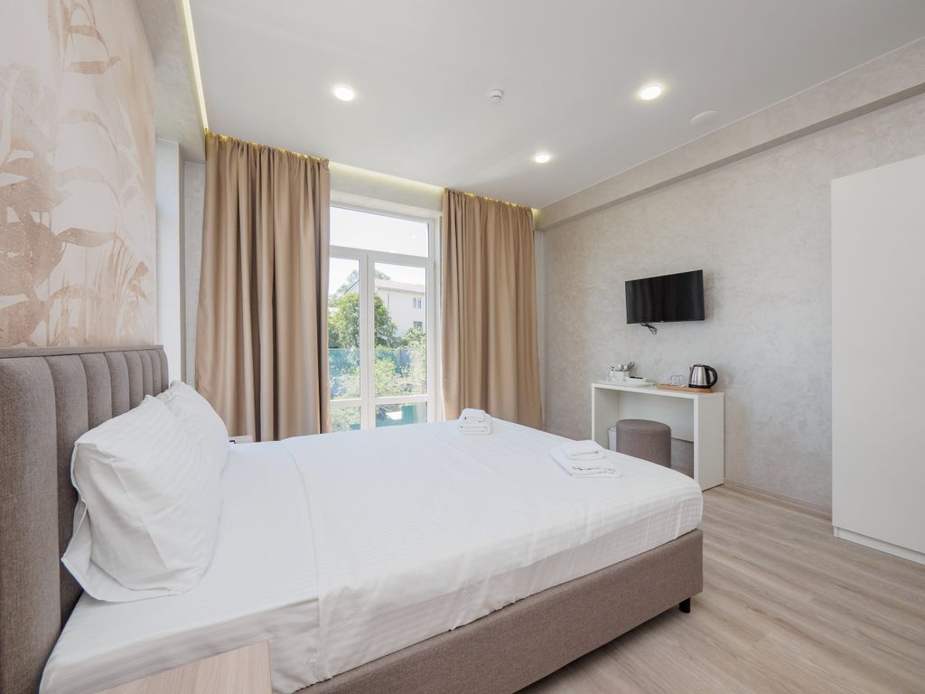 Резиденция Каскад 3 звезды - премиальный семейный отель с бассейном, сауной и открытой террасой на крыше всего в 10 минутах ходьбы от моря. Номера оснащены всем необходимым для проживания: кондиционер, микроволновая печь, чайная станция, холодильник, посуда. В ванных комнатах ванна или душ (уточнять при бронировании).