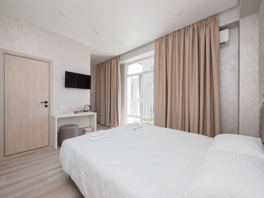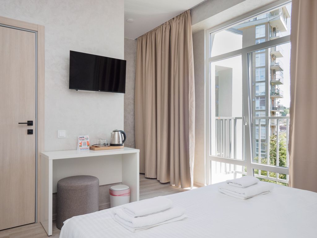 Резиденция Каскад 3 звезды - премиальный семейный отель с бассейном, сауной и открытой террасой на крыше всего в 10 минутах ходьбы от моря. Номера оснащены всем необходимым для проживания: кондиционер, микроволновая печь, чайная станция, холодильник, посуда. В ванных комнатах ванна или душ (уточнять при бронировании).