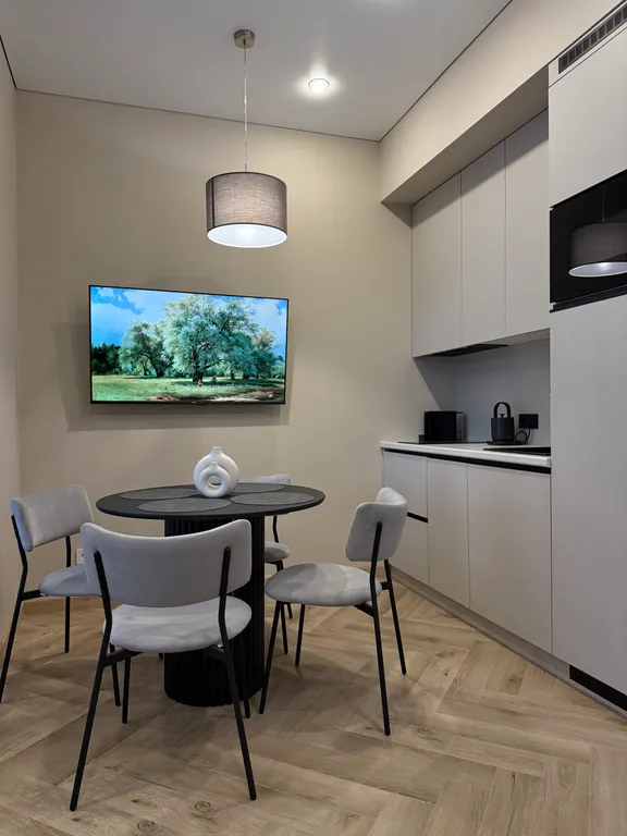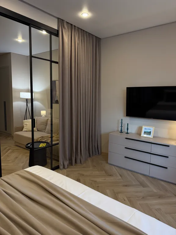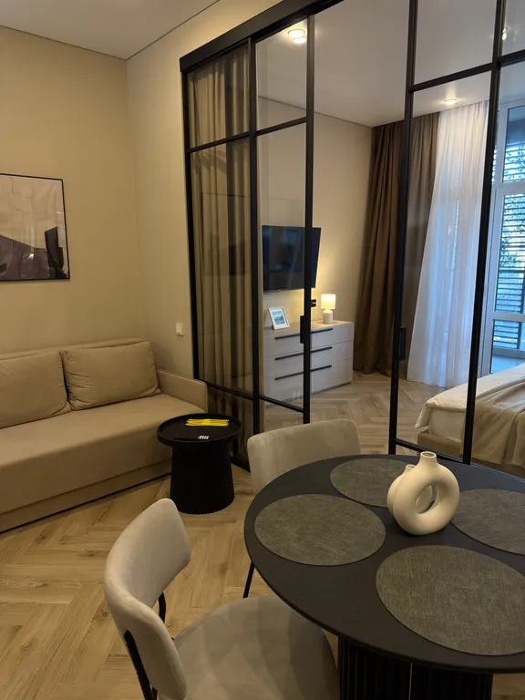 Сдаются апартаменты в новом комплексе апарт-отеля «Атлас» для 4 человек. Первая береговая линия, до моря 30 метров. Подогреваемые уличные бассейны (может не подогревать в межсезонье). Новый современный дизайнерский ремонт. В апартаментах есть всё для комфортного проживания до 4-х человек: Большая двуспальная кровать с ортопедическим матрасом и удобный раскладной диван. Два телевизора со Smart TV с диагональю 50 дюймов. Кухня с индукционной плитой, микроволновой печью, холодильником, капсульной кофеваркой. В санузле стиральная машина. Из гостиной выход на большой балкон. Корпус оснащен новыми современными лифтами. В закрытом охраняемом комплексе бесплатная стоянка для автомобилей с зарядными станциями для электромобилей. Во дворе большая детская площадка.