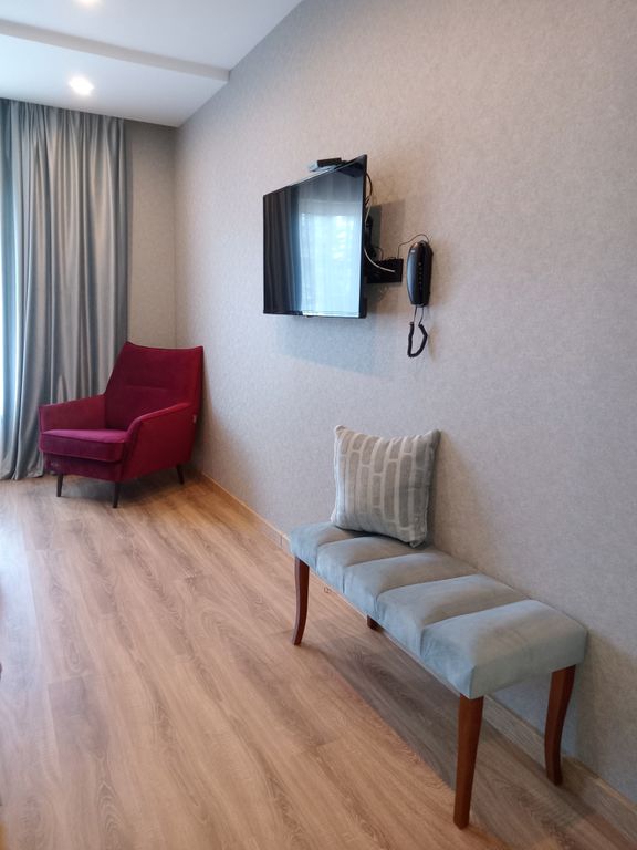 Просторные светлые номера в дизайнерском интерьере класса люкс. В номерах есть всё необходимое для комфортного пребывания.