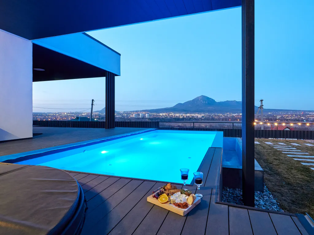 Дорогие гости и жители нашего города! Приглашаем вас в гостевой дом со спа комплексом «Белая дача»! Здесь вы сможете отдохнуть, расслабиться и насладиться великолепным панорамным видом на город, горы Машук, Бештау и новопятигорское озеро!Находимся в тихом эко районе г. Пятигорска в 5 мин от озера, парка Победы, магазины, аптеки 3 мин (на авто) 10 мин от центра! - Комплекс рассчитан для суточного размещения до 10 гостей, без посторонних, в кругу своих близких! - Что мы для вас приготовили: Дом площадью 160 кв. м - ︎терраса 90 кв м с большим мангалом - дровяная печь -︎ очаг (костровая зона) - ︎3 спальни (с ортопедическими матрасами) - 3 больших смарт ТВ - 6 основных мест, 4 доп. (2 тахты в гостиной +модульный диван) -︎ музыкальная система, светомузыка - ︎зонирование гостиной шторой для большего комфорта гостей на доп. местах︎ - 2 сан. узла, фен, гигиенические принадлежности - ︎оборудованная кухонная зона с техникой и посудой - полотенца, халаты для гостей на основных местах, тапочки