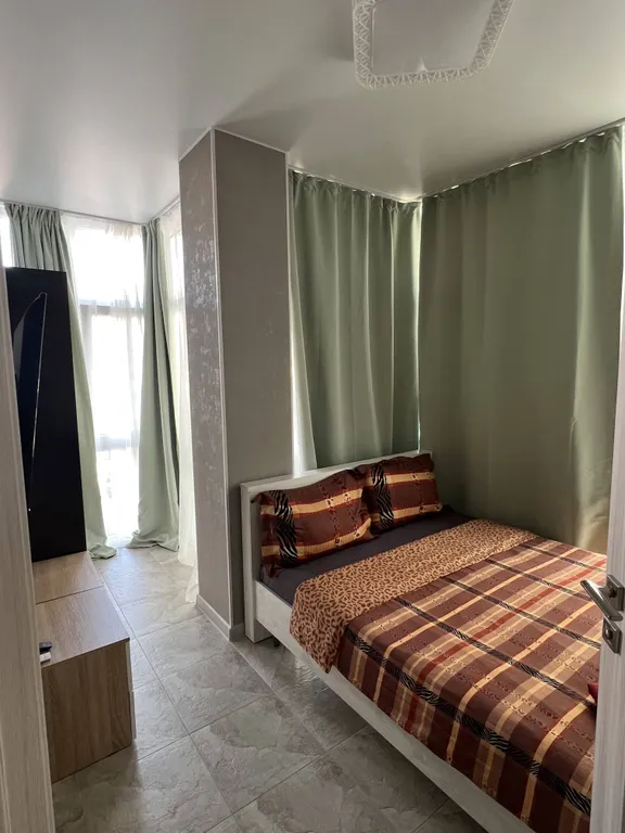 Уютная квартира с двумя изолированными спальнями. Есть вся необходимая бытовая техника, балкон, мини-кухня, wi-fi. Минимально на 3 суток. Дом расположен в одной минуте ходьбы от моря. Территория комплекса огорожена забором. В вашем распоряжении наш WI-FI. Две спальни: Широкая двуспальная кровать. Постельные принадлежности (подушки, одеяла, постельное белье). Шкаф. Прикроватная тумбочка. Телевизор с плоским экраном. Кондиционер. Гостиная: Раскладной двухместный диван. Постельные принадлежности (подушки, одеяла, постельное белье). Стол и стулья. Кондиционер. Гладильная доска и утюг. Кухня: Вся необходимая посуда. Электрический чайник. Микроволновая печь. Электроплита. Духовка. Вытяжка. Холодильник. Ванная комната: Полотенца (для тела, для лица, для ног). Фен. Стиральная машина. Курение в апартаментах запрещено! Расчетное время заезда с 15:00 Расчетное время выезда до 12:00 Поздние въезды и выезды согласовываются заранее.