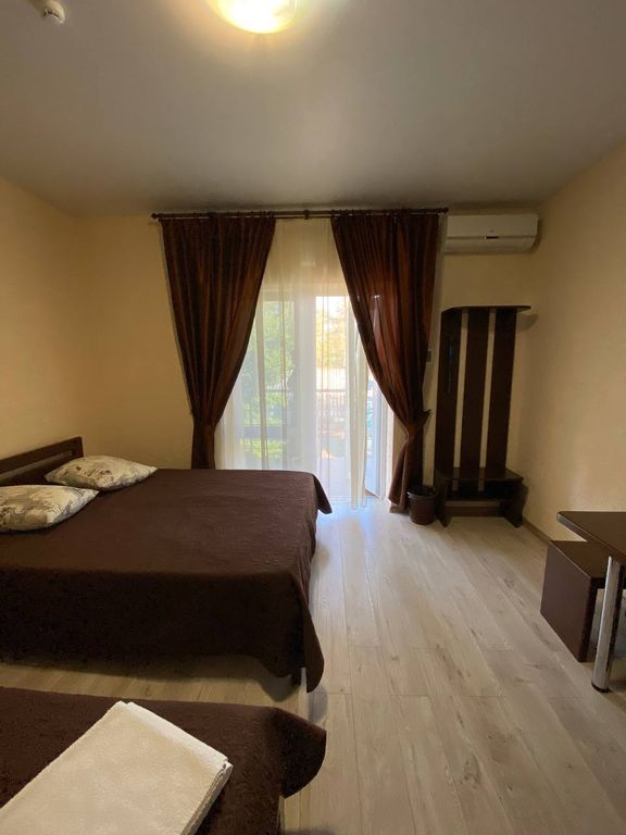 Отель «Арина» расположен в поселке Штормовое, Крым в 20 км от города Евпатория. Отель находится на территории Базы отдыха «Штормовое» в самом посёлке в 80 метрах от моря. Штормовое находится на берегу открытого моря. Широкий берег, покрытый мелким, приятным на ощупь, мягким песком. В близи находятся 2 солёных озера с лечебными грязями. Номера оборудованы удобной мебелью и современной бытовой техникой. В номерах к Вашим услугам: кондиционер, телевизор, спутниковое телевидение, интернет Wi-Fi, санузел. Кроме того, к услугам гостей 2 общие кухни, оборудованные всем необходимым инвентарем, для самостоятельного приготовления пищи. На территории отеля есть несколько беседок для отдыха, мангал для приготовления шашлыка. К услугам гостей приехавших на автомобилях, предоставляется стоянка. Рядом с отелем находится рынок, магазины, множество баров, ночной клуб «Малибу». На отдыхе в Штормовом Вас ждет множество развлечений на пляже: волейбольная площадка, скутера, катамараны, водные горки, катани