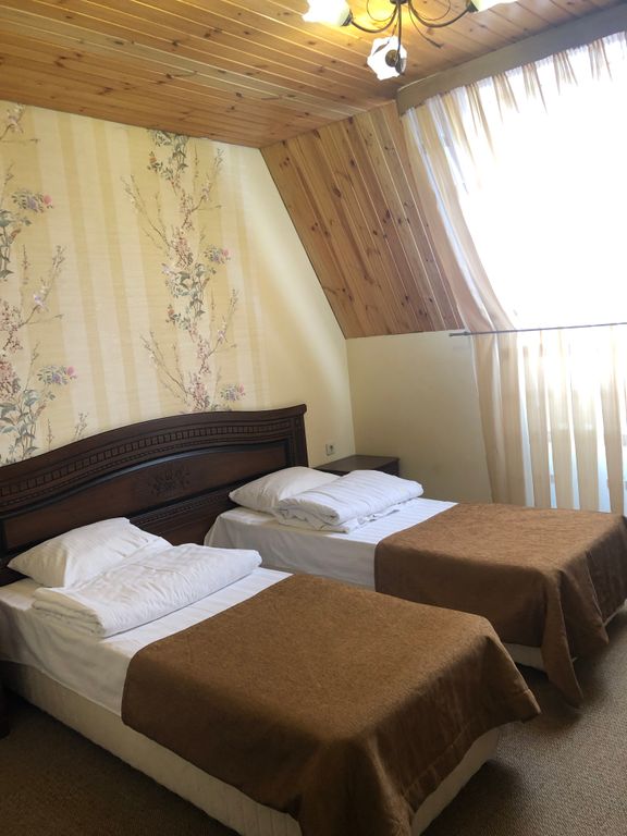 Гостиница "жемчужина" расположена в тихом районе города ессентуки. Недалёко находится центр города и курортный парк. К услугам гостей финская баня, бассейн и комната отдыха. Здесь представлено 17 номеров: от одноместного стандарта до люкса. В интерьере четко прослеживается стиль лофт: стены оформленные плиткой «под кирпичную кладку» деревом, лестницы с резкими переходами, характерная цветовая гамма. Для обеда установлен стол, есть холодильник. Недалёко есть продуктовый магазин, ближайшее кафе "авли" в 14-ти минутах. Для проведения различных мероприятий имеется конференц-зал со всем сопутствующим оборудованием. В шаговой доступности магазины, кафе, интересные места города. Расстояние до аэропорта 28 км. До жд вокзала - 1, 8 км.