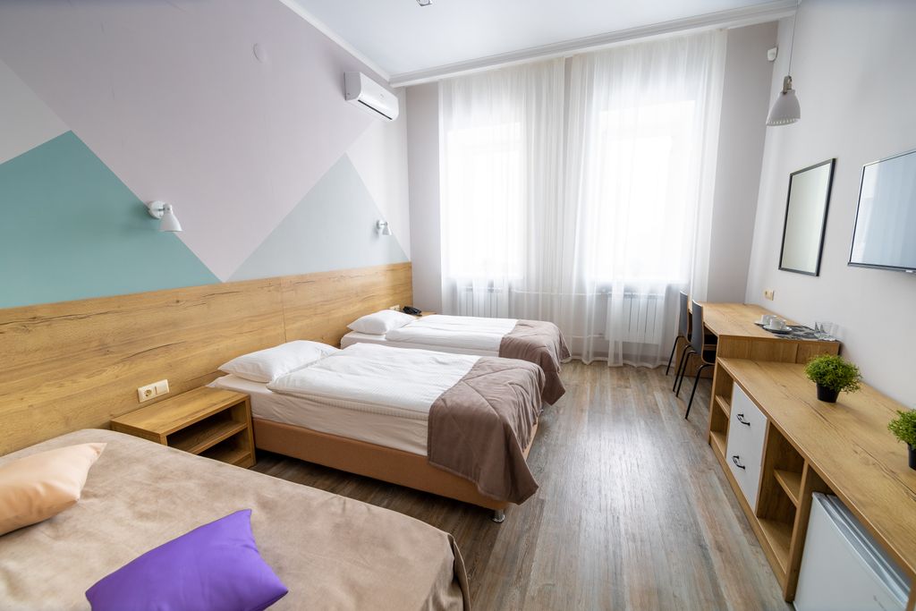 Современный отель открыл гостям свои двери в 2020 году. Всё оборудовано и спроектировано с соблюдением новейших норм и стандартов. Для гостей 30 комфортабельных номеров с дизайнерским ремонтом, одно-, двухместные номера, студии, общей вместимостью 86 человек. Из окон отличный вид на пруд с утками, березы и малоэтажную застройку. В отеле «Атриа» дружелюбный и вежливый персонал, рад принять каждого гостя, окружив его заботой и теплом. Ресепшн работает круглосуточно. Регистрация иностранных граждан в УФМС.