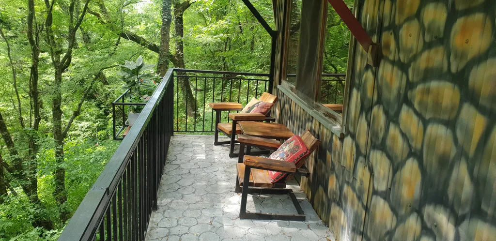 Двухэтажный коттедж в лесу, 600 м от моря. Уютное место, шумят деревья, поют птички. Коттедж находится на горке, нужно подниматься по лестнице. Гостевая парковка под видеонаблюдением. Из окон и с балконов открывается потрясающий вид на кавказский субтропический лес. На первом этаже кухня-гостиная, на втором этаже спальня и санузел. В спальне большая гардеробная и выход на балкон. Котедж украшен авторскими рисунками. Кухня полностью оборудованна необходимыми принадлежностями. Красивая, новая посуда. Перед домом веранда с мангалом и летняя кухня: мангал, садовая мебель, решетки для жарки. На веранде разноцветные фонарики, создающие уютную атмосферу. Максимальная вместимость котеджа 6 человек. В 2-х минутах ходьбы находится маленький супермаркет. Рядом с морем остановка электрички "Южный". Электричка позволяет путешествовать без пробок по всему побережью от Туапсе до Олимпийского Парка. Можно быстро съездить в Туапсе за продуктами. Достопримечательности в близи Туапсе: Дольмены г