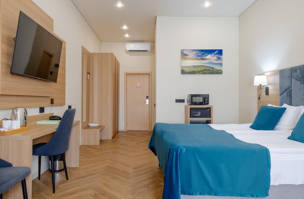 Отель “Сканди” - новый отель премиум класса, удачно сочетающий в себе лучшие традиции скандинавского дизайна в комбинации с лофт стилем, что в свою очередь превосходно передает особый колорит изысканности и утончённости. Уникален по своему расположению, находится всего в 10 минутах ходьбы от курортной части Кисловодска, в начале пешеходной зоны к источнику нарзана №23 (Желябовский нарзанный бювет) до которого всего 5 минут пути. В непосредственной близости от отеля (менее 300м) расположен санаторий "Азимут" - партнер отеля "Сканди". На его базе гости отеля смогут пройти лечение и SPA-процедуры. Направление на лечение в санаторий "Азимут" можно получить на стойке регистрации отеля "Сканди". В отеле имеется уютная баня на дровах на 6 человек. Купель с подогревом и зона барбекю на свежем воздухе. Данная услуга предоставляется за отдельную стоимость. На стойке регистрации можно заказать экскурсии по Северному Кавказу. Партнер - турагентство "Дар