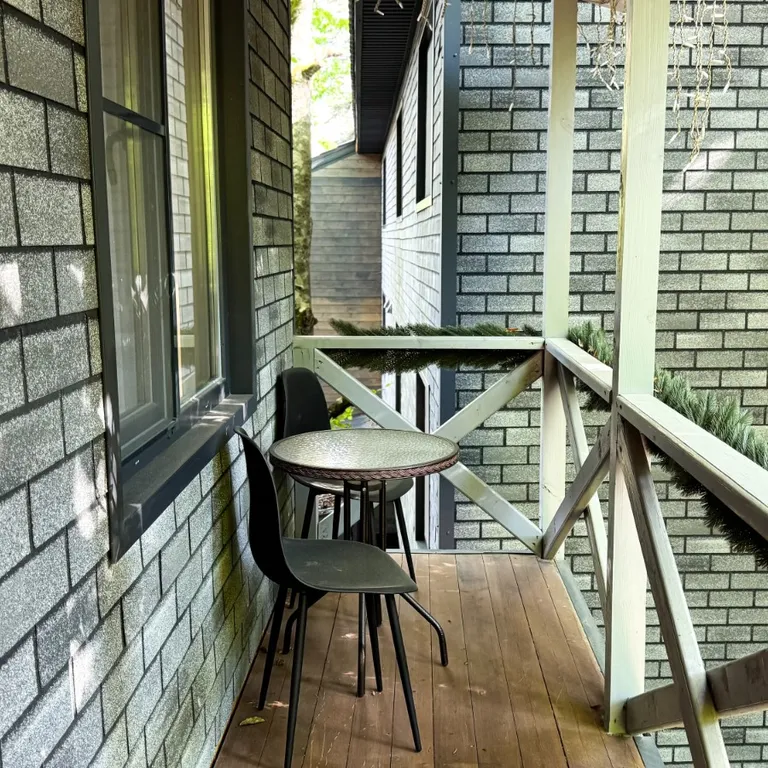 Коттедж с 4 спальнями на 11 человек Двухэтажный коттедж состоит из 4 спален, оборудованной кухни –гостиной, прихожей и двух санузлов на каждом этаже. На втором этаже имеется просторный балкон с уличной мебелью. Спальни оснащены двуспальной кроватью, комодами или шкафом, ТВ, прикроватными тумбами и лампами. В одной из спален дополнительно установлено кресло-кровать. Кухня-гостиная оборудована всем необходимым: кухонный гарнитур, плита, раковина, набор посуды и столового инвентаря, холодильник, чайник, СВЧ-печь. Диван-кровать и ТВ, большой стол и стулья по количеству проживающих лиц. Отопление автономное. Сейф. Площадь коттеджа – 99 кв.м.
