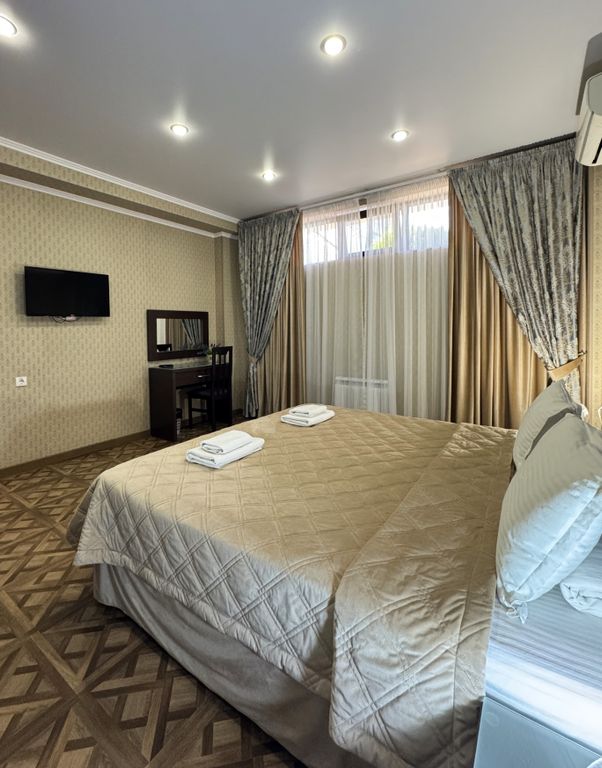 Добро пожаловать в самое сердце курортного города Геленджик — уютный отель "Парадейсон"! Здесь современный шарм классического стиля сочетается с атмосферой комфорта и уюта, приглашая вас на незабываемый отдых! Отель идеально расположен всего в нескольких минутах ходьбы от лазурного моря (8-10 минут) и самых популярных развлекательных центров, кинотеатров и ресторанов. Благодаря близости к "Платановой аллее", "Городку сказок", Аквапарку «Золотая бухта», дельфинарию, вы сможете удобно перемещаться, не думая о дополнительных затратах. В отеле "Парадейсон" представлены номера разных категорий — от уютных двухместных Deluxe до просторных семейных трехкомнатных апартаментов с собственной кухней. Дети до 3-х лет размещаются абсолютно бесплатно. Не теряйте времени, позвоните в ресепшен, чтобы получить исчерпывающую информацию о номерах и помощь в выборе идеального варианта. На территории отеля вы сможете насладиться подогреваемым бассейном круглый год! Ж