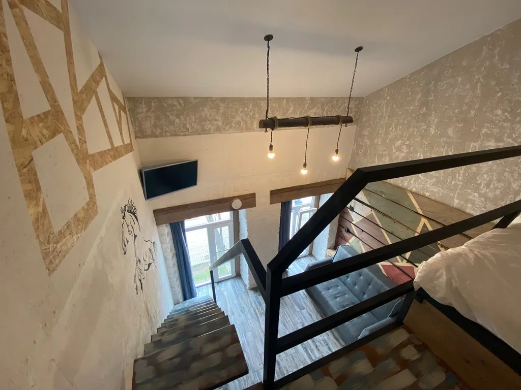 Двухуровневые апартаменты с панорамным видом на успенский собор и звонницу. Дизайнерский ремонт выполнен в стиле лофт. В номере обустроена мини-кухня с бытовой техникой и необходимой посудой, с собственным санузлом. Бесконтактное заселение, высокоскоростной wi-fi интернет, шумоизоляция, система вентиляции и кондиционер, видеонаблюдение в местах общего пользования.