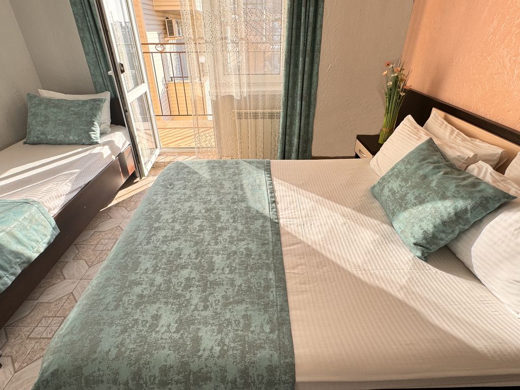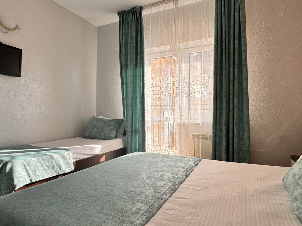 Представьте себе место, где время замедляется, а заботы остаются где-то далеко. Это отель Бавария в солнечном Витязево, ваш комфортный уголок спокойствия. Всего несколько минут прогулки — и вы на песчаном пляже, где можно наслаждаться морем и солнцем. Мы создали для вас уютные номера, где каждая деталь продумана для вашего комфорта. Каждый день Вас будет ждать вкусная и разнообразная кухня по типу «Шведский стол», а в любое время можно освежиться в бассейне с подогревом, где есть отдельная зона для детей. Территория отеля ухожена и спокойна — идеальное место, чтобы расслабиться на свежем воздухе. А как насчет ароматного шашлыка, приготовленного на открытом огне? Или зажигательных “Баварских вечеров”, которые мы устраиваем специально для вас? Днем скучать точно не придется – наша команда аниматоров приготовила для вас массу веселых сюрпризов. Расписание всегда под рукой у наших администраторов. Хотите увидеть что-то новое? Наш гид с удовольствием поможет вам спланировать самые захватыва
