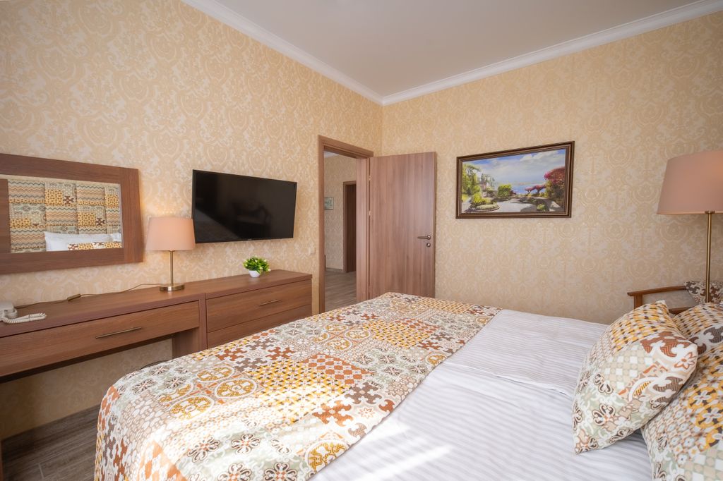 Курортный отель «Капкана Бэй-Плаза 4*» располагается рядом с центральной прогулочной аллеей «Паралия» в курортном поселке Витязево в шаговой доступности от моря. Здание отеля оформлено в современном стиле. Изюминка отеля – скай-бар под открытым небом с панорамным видом на Черное море, где царит атмосфера романтики и отдыха. Гостям предлагаются освежающий бассейн и разнообразные водные развлечения. Ресторан порадует гурманов как традиционными, так и интернациональными блюдами из местных продуктов. Рядом с отелем множество магазинчиков, детских аттракционов, сувенирных и фруктовых лавок, пляж в 10-15 минутах.